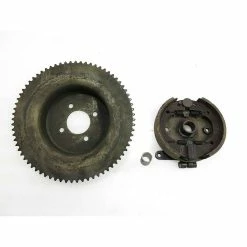 This is new old stock Bendix 5″ brake/sprocket drum assembly. The center bore is 3/4″, but an adapter is included to reduce to 5/8″. These are vintage units and will have surface rust and light shelf wear, but are brand new. Perfect restoration piece for your Bonanza minibike or any others that came with the Bendix 5″ brake assembly. The sprocket hub is for #35 chain chain and has 72 teeth.